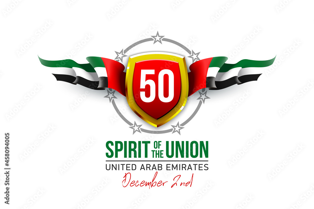 Fifty Uae National Day Spirit Of The Union Logo With Uae Flag And Shield Illustration Of